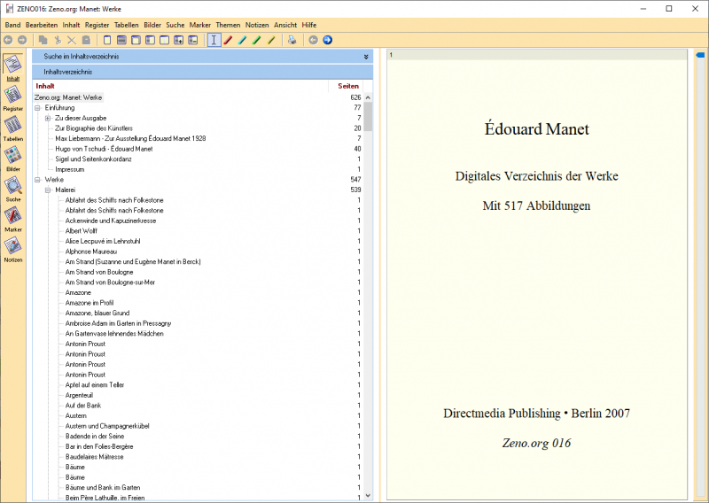 »Zeno.org« Band 16: Édouard Manet: Digitales Verzeichnis der Werke